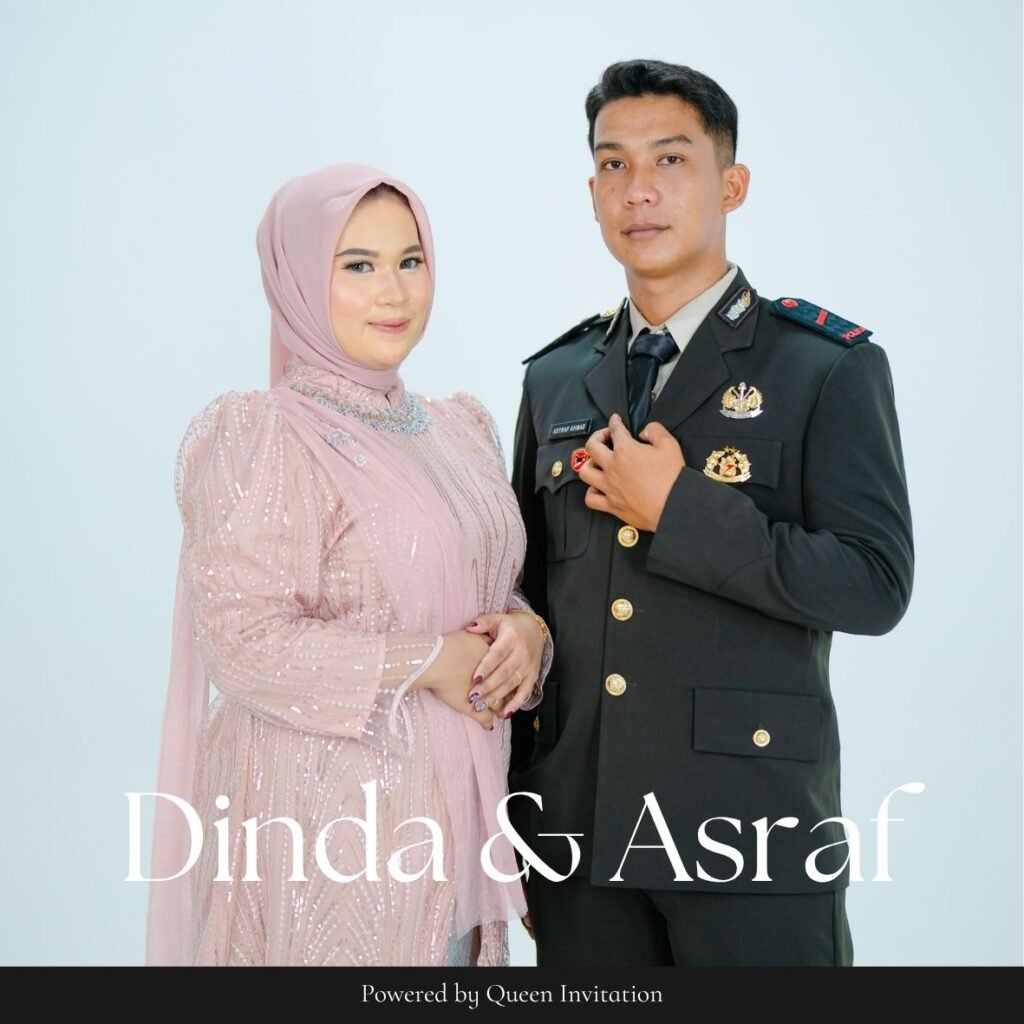 PERSONALIZED FOR Tamu Undangan WEDDING CEREMONY OF Dinda & Asraf Sabtu, 22 November 2025 Dan di antara tanda-tanda (kebesaran)-Nya ialah Dia menciptakan pasangan-pasangan untukmu dari jenismu sendiri, agar kamu cenderung dan merasa tenteram kepadanya, dan Dia menjadikan di antaramu rasa kasih dan sayang. Sungguh, pada yang demikian itu benar-benar terdapat tanda-tanda (kebesaran Allah) bagi kaum […]
